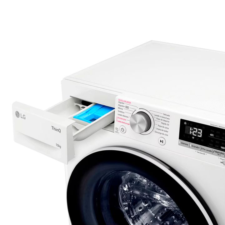 CARACTERÍSTICAS: - Marca: LG - Modelo: WM10WVC4S6 - Display: Digital - Tipo de lavado: Europeo - Tipo de carga: Frontal - Tecnología: Inverter - Capacidad: 10 Kg - Velocidad centrifugado: 1400 RPM - Cantidad de programas: 14 - Lavado rápido: Si - Material tambor: Acero inoxidable - Eficiencia energé...