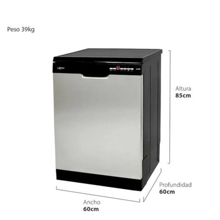 Lavavajillas con capacidad de lavado de 15 cubiertos. Color Acero inoxidable con negro. Eficiencia A+. Cuenta con 3 cestos separadores y canasta para cubiertos. Panel táctil digital. Posee 9 programas de lavado: Universal, Eco, Prelavado, Vapor, Familia, Diario, Cristal, Rápido 60’, Rápido 25’. Tien...
