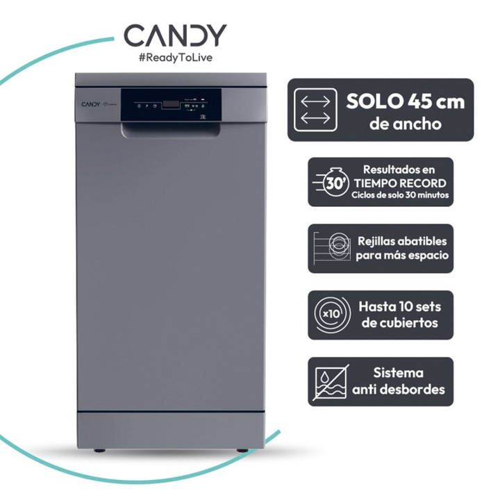 Lavavajillas Candy Brava 10 cubiertos Acero Inoxidable CDPH2D1047S-12 - Resultados increíbles en menos tiempo. El lavavajillas slim ofrece un ciclo de lavado rápido con resultados excepcionales en solo 30 minutos - Gran capacidad. El lavavajillas slim de Candy permite cargar hasta 10 Set de cubierto...