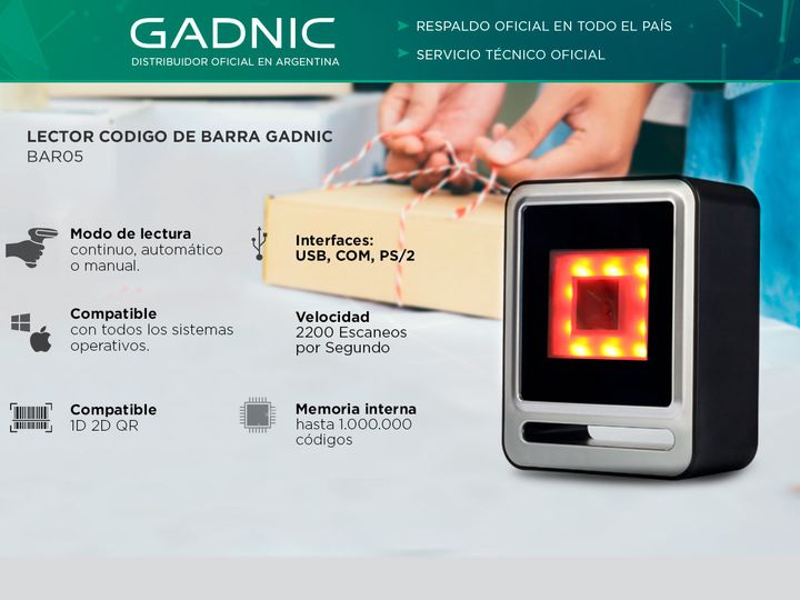 ¡GADNIC presenta su nueva línea de escaners inalámbricos para códigos de barras! Este lector de códigos de barra con tecnología 1D & 2D , QR con alta sensibilidad es capaz de leer en pantallas electrónicas. Además puede captar todos los códigos de barras estándar de 1D, 2D y QR. Es una solución aseq...