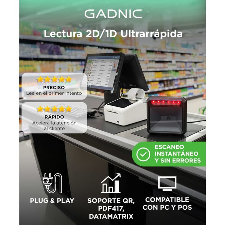 ¡Lector de Código de Barras Omnidireccional Gadnic con USB! ¿Buscas una solución eficiente y versátil para gestionar el inventario de tu negocio? No busques más, porque el Lector de Código de Barras Omnidireccional 1D/2D/QR con USB es la herramienta perfecta para agilizar tus procesos de escaneo y m...