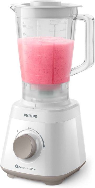 LICUADORA HR212900 550W 2L 2V PHILIPS -Potencia 550 W -Jarra de plastico de 2 L -2 velocidades + pulsador -Cuchillas dentadas de 4 hojas ProBlend4 para batir mezclar y triturar hielo -Modelo HR212900 -Garantia del fabricante 24 meses -Origen Brasil