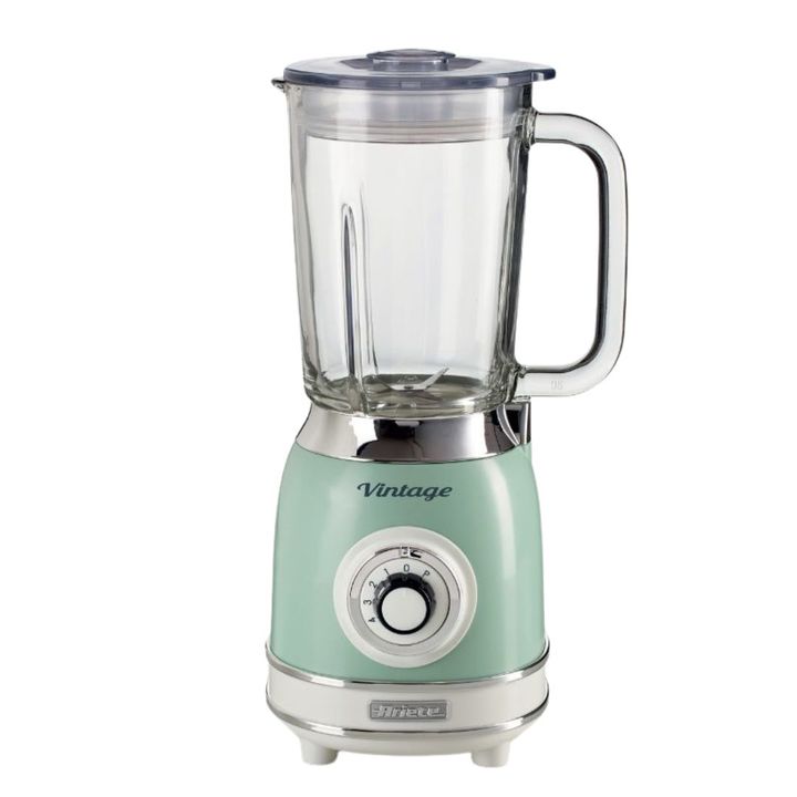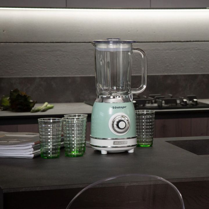 Licuadora Vintage 583 Verde Ariete PA-LI583VE-I Vaso de vidrio de 1,5 litros. 4 Velocidades + Pulso con función triturador de hielo. 4 Cuchillas de Acero Inoxidable. ¿Un batido energizante, un batido cremoso o un granizado refrescante? Con la batidora Ariete Vintage con vaso de cristal, puedes prepa...