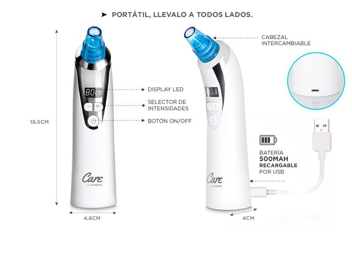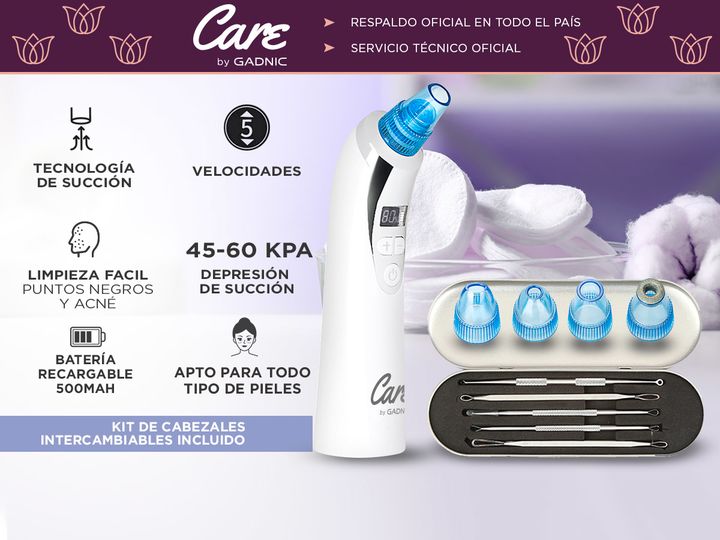 Especificaciones Limpiador Facial Care By Gadnic BF3078 Removedor de Puntos Negros 5 Velocidades - CLEAN001 Tensión: 3.7 V Potencia: 1 W Dimensiones: 18 Extractor De Puntos Negros Gadnic KM600 Kit De 5 Agujas Acné - KITMANI6 Ideal para el cuidado de la piel Material: Acero inoxidable plata Saca los ...