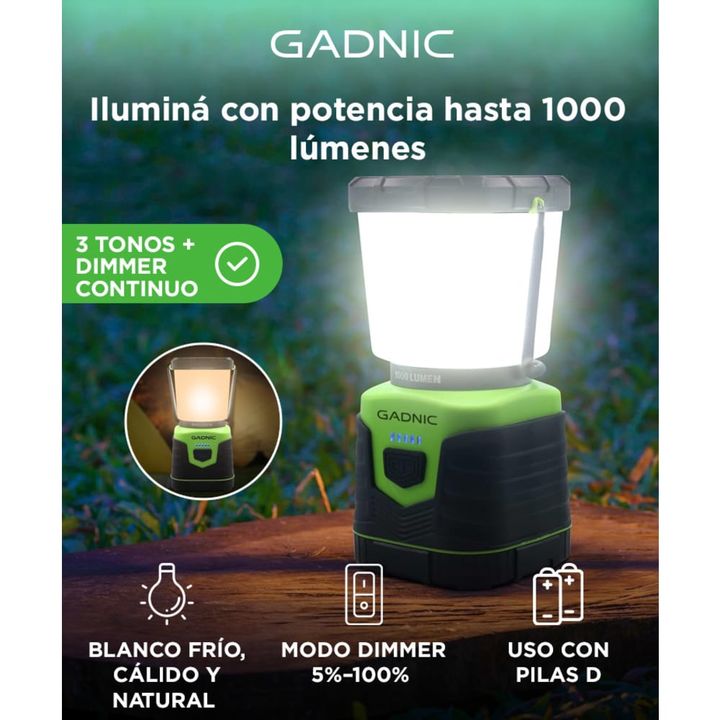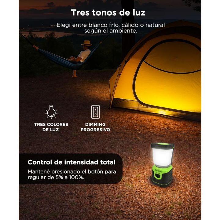 Iluminación potente de 1000 lm: Perfecta para interiores y exteriores, brinda luz clara hasta 15 m. Tres tonos de luz ajustables: Elegí entre blanco frío, cálido o natural según la ocasión. Control total de intensidad: Función de dimmer continuo para regular de 5?00% con solo mantener presionado. Au...