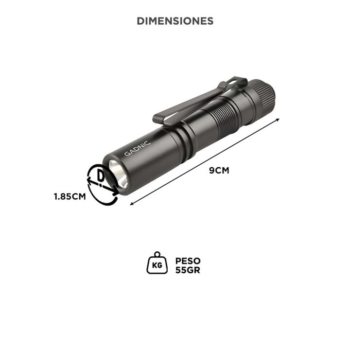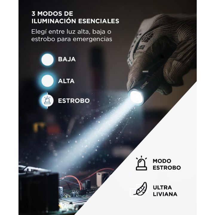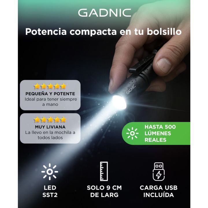 Diseño ultracompacto y liviano: Con solo 9 cm y 55 g, es ideal para llevar en cualquier bolsillo, bolso o estuche. Iluminación de alto brillo: Con LED SST25 que entrega hasta 500 lúmenes reales. Sorprendente para su tamaño. Tres modos prácticos de uso: Alta, baja y estrobo para que elijas según tu n...