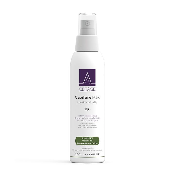 Loción Anticaída Cepage Capillaire Max Tratamiento 120ml Producto de uso diario. Aplicar en el cuero cabelludo una vez al día. Masajear suavemente con la yema de los dedos. No enjuagar. No deja película oleosa. Se recomienda el uso sobre cabello húmedo, recién lavado. Complementar el tratamiento con...