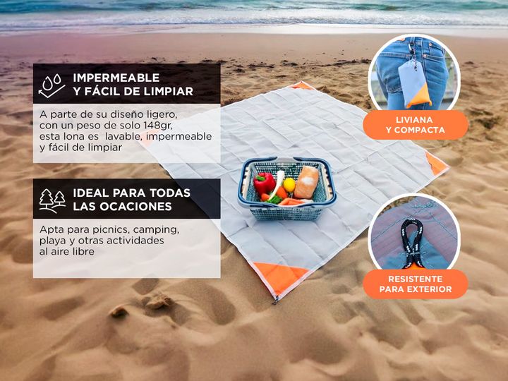 Gadnic presenta la nueva lona playera ultra plegable Eleva tus experiencias al aire libre con nuestra manta de picnic y playa con bolsillo. Fabricada en poliéster de alta calidad y con un tamaño de 140 x 140 cm, es perfecta para picnics, campamentos y días de playa. Su diseño ligero, con un peso de ...