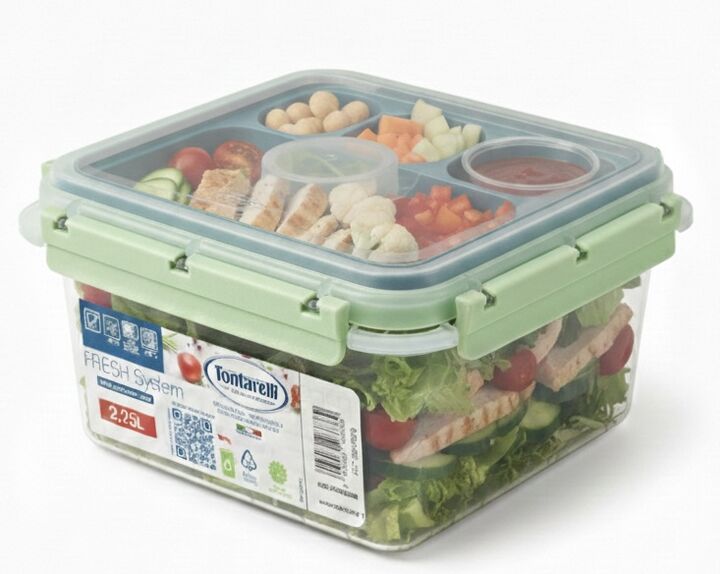 El Lunch Box Fresh System de Tontarelli es ideal para transportar comidas de manera práctica, segura y organizada. Su diseño inteligente con bandeja interna divisoria permite separar distintos alimentos sin que se mezclen, manteniéndolos frescos hasta el momento de consumirlos. Fabricado en Italia, ...