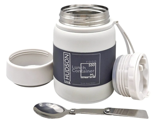Lunchera vianda térmica Hudson de 530 cc, ideal para llevar tus comidas al trabajo, la escuela o actividades al aire libre. Fabricada en acero inoxidable de doble pared, ayuda a conservar la temperatura de los alimentos por más tiempo, manteniéndolos calientes o fríos según lo necesites. Cuenta con ...