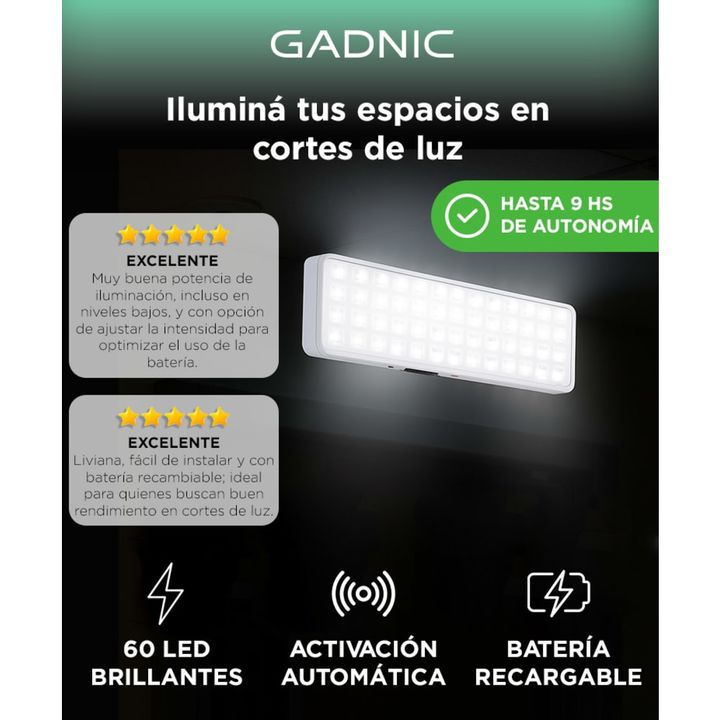 ¡GADNIC Tools presenta su nueva línea de Luces de Emergencia! Prácticas, versátiles y de alta calidad, estas luces son ideales para la oficina, el hogar, camping y mucho más. Cuentan con enchufe IRAM 220V y una batería recargable, lo que las convierte en una de las mejores opciones del mercado. Ofre...