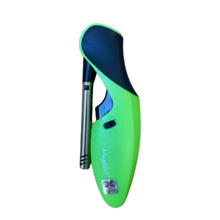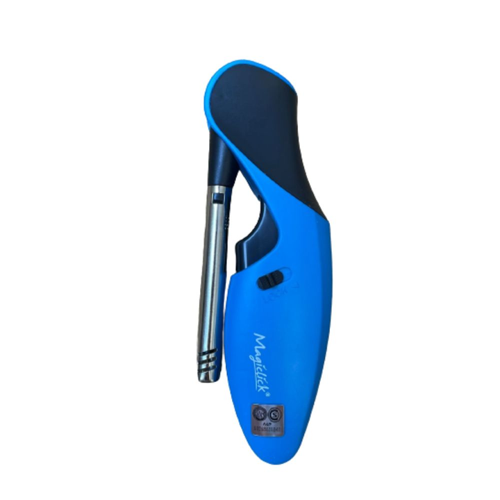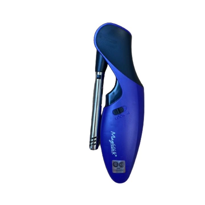 Encendedor recargable con llama regulable y cano plegable.