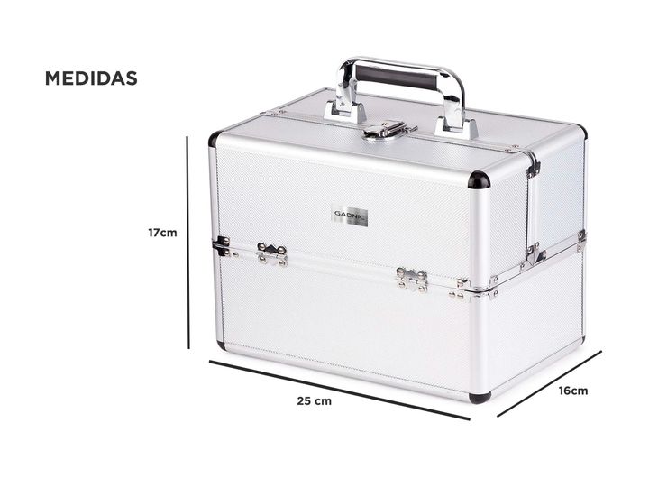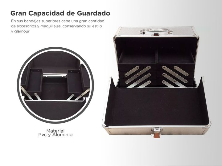 Con este Maletín podrás llevar tus maquillajes a donde vos quieras. Posee 6 compartimientos superiores para facilitar un mejor manejo a la hora de utilizar tus productos de cosmética pero además de ser fácil de transportar este maletín te permitirá estar muy seguro ya que posee llave y esta construi...