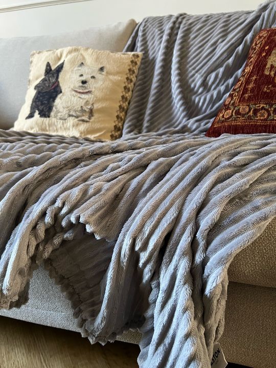Frazada Manta Acanalada para utilizar tanto en cama como en sillon, ideal para decorar en lugares donde uno se tira a descansar y quiere estar tapado o calentito. Polar acanalado de ambos lados Medida : 180 x 220 cm Reversible Material : 100% Poliester Color : Gris No genera pelusa Hipoalergenica Se...