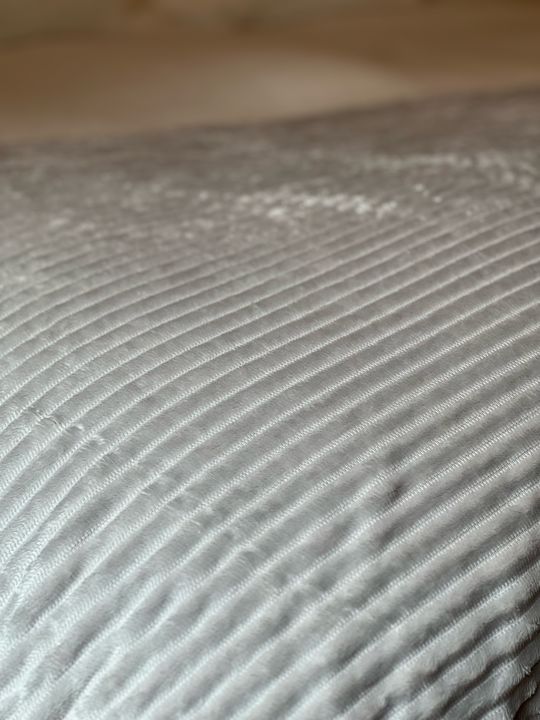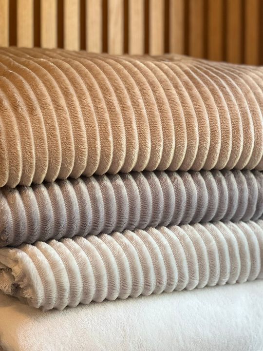 Frazada Manta Acanalada para utilizar tanto en cama como en sillon, ideal para decorar en lugares donde uno se tira a descansar y quiere estar tapado o calentito. Polar acanalado de ambos lados Medida : 180 x 220 cm Reversible Material : 100% Poliester Colores : Gris , Gris claro y Beige No genera p...