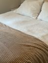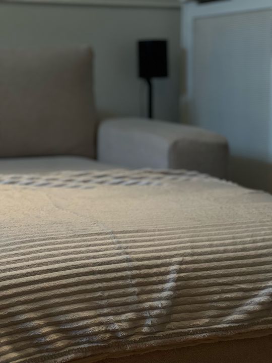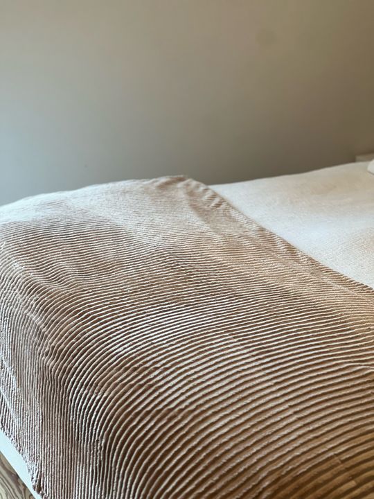 Frazada Manta Acanalada para utilizar tanto en cama como en sillon, ideal para decorar en lugares donde uno se tira a descansar y quiere estar tapado o calentito. Polar acanalado de ambos lados Medida : 180 x 220 cm Reversible Material : 100% Poliester Color : Beige/Natural No genera pelusa Hipoaler...