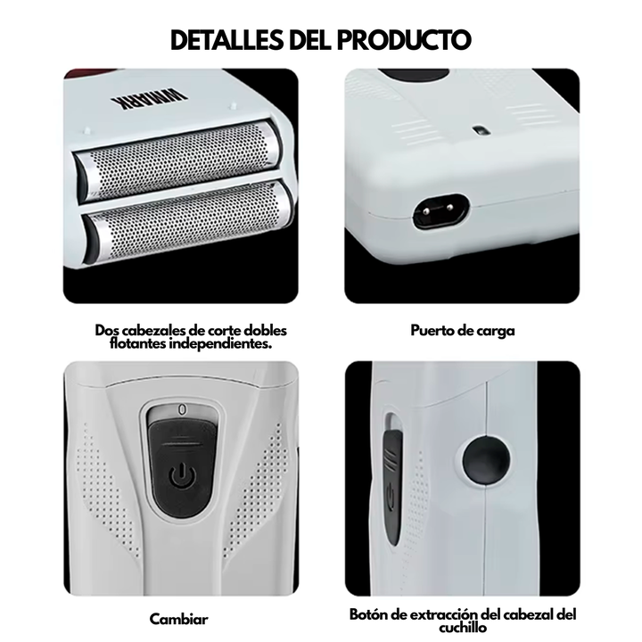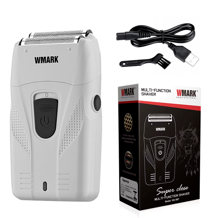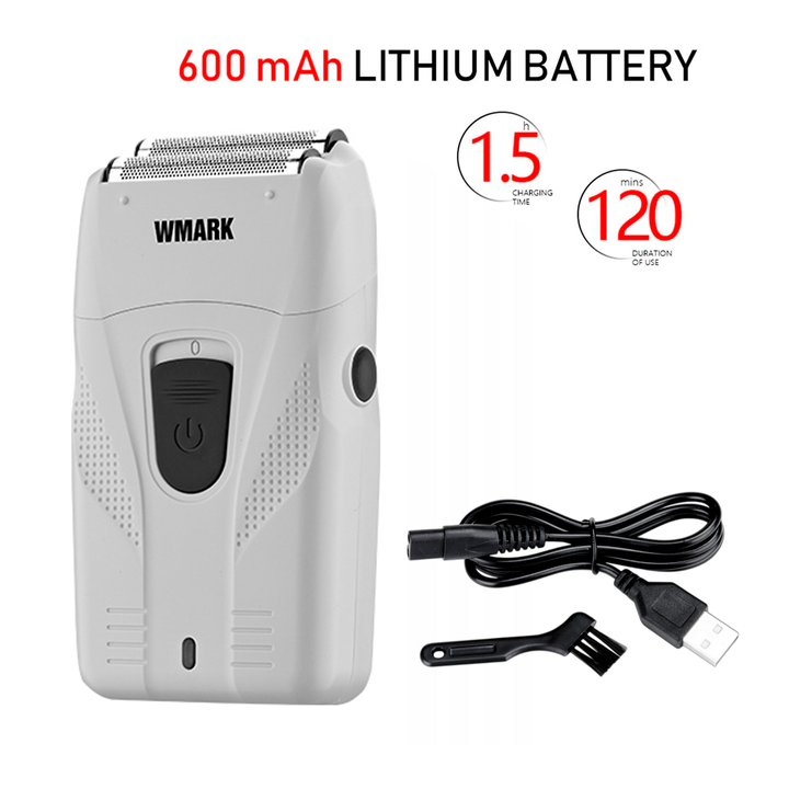 WMARK MAQUINA AFEITADORA INALAMBRICA 6800 RPM RECARGABLE SKU: NG-987GREY • Dos cabezales flotantes. • Batería de litio: 600 MAH, potencia: 3,7 V, 5 W. • Motor: 6800 RPM • 1,5 horas de carga completa 120 minutos de uso. • Cubierta desmontable con rejilla, conveniente Para limpiar y reemplazar el cabe...