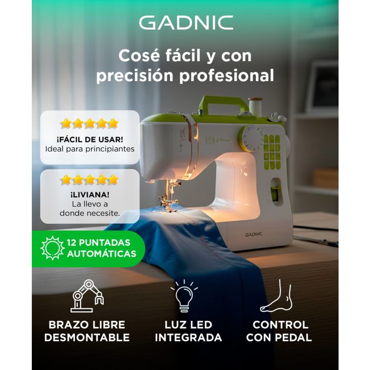 Gadnic presenta la nueva Máquina de Coser Multifuncional: Cortador de Hilo Integrado: Facilita el corte del hilo sin necesidad de tijeras, agilizando el proceso de costura. Brazo Libre para Costuras Tubulares: Permite coser fácilmente prendas tubulares como mangas y pantalones, brindando mayor versa...