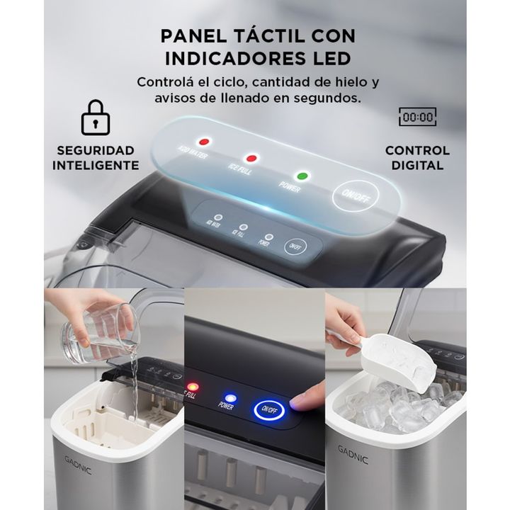 Introducí la conveniencia y la frescura del hielo en tu hogar con nuestra innovadora Máquina de Hielo. Equipada con un panel de control táctil intuitivo, esta máquina hace que la fabricación de hielo sea más fácil que nunca. Con su función de autolimpieza integrada, mantener la máquina en óptimas co...