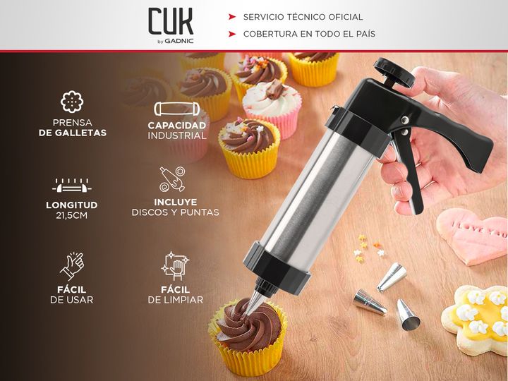¡Maquina rellenadora Decordadora Galletas Gadnic Industrial! Con esta maquina podrás hacer galletitas sin esfuerzo. Construida en aluminio con gatillo reforzado es una maquina pensada para que no tengas que hacer esfuerzo extra Fácil de usar: Tenés un control completo sobre tus proyectos de decoraci...