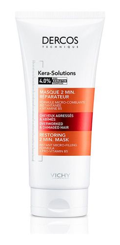 Mascarilla Vichy Dercos Kera Solutions Reparadora 200ml El Acondicionador Dercos Kera-Solutions reconstruye el cabello dañado por agresiones químicas, térmicas, mecánicas y rayos uv. Este tratamiento reconstruye el cabello compensando el daño asociado a la pérdida de keratina, reduciendo un 63% del ...
