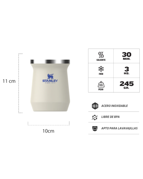 El mate Stanley mantiene la temperatura durante toda la cebada. Es práctico e higiénico. Si el producto es comprado en Argentina la garantía es de por vida; siempre y cuando cumpla con los requisitos solicitados. - 30 Minutos Caliente. - 3 Hs Frío.