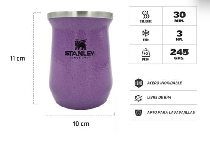 MATE TERMICO 236ML STANLEY CLASSIC INOXIDABLE SIN BPA LILAC 10-10148-044 El mate Stanley mantiene la temperatura durante toda la cebada. Es práctico e higiénico. Si el producto es comprado en Argentina la garantía es de por vida; siempre y cuando cumpla con los requisitos solicitados. CARACTERÍSTICA...