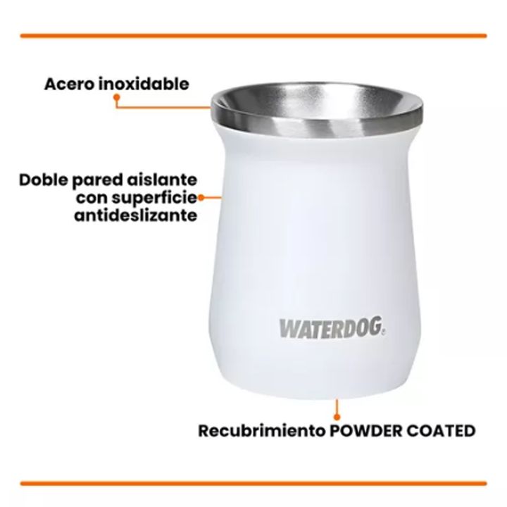 CAPACIDAD: 240 ml DIÁMETRO SUPERIOR: 8,30 cm DIÁMETRO INFERIOR: 7,30 cm 100% ACERO INOXIDABLE AISI 304 / 304. Doble pared aislante con superficie antideslizante. Recubrimiento POWDER COATED. Fácil de llenar, gracias a su boca ancha. Sumamente sencillo de cuidar. Apto bebidas frías y calientes.