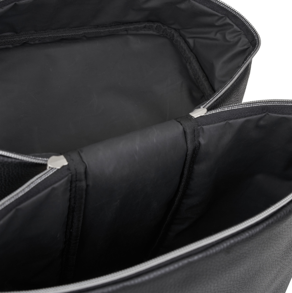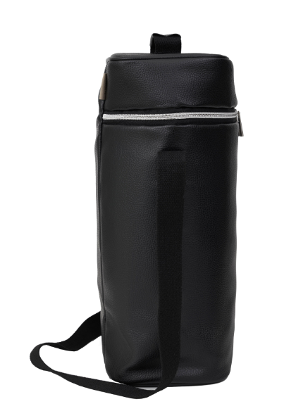 Bolso para equipo de mate Pampero, realizado en PU negro, simil cuero, forrada internamente en negro. Cuenta con correa regulable. La foto es ilustrativa, no incluye termo ni mate. Medidas: 39 x 23 x 14 cm. Capacidad: 12lts. Pampero.