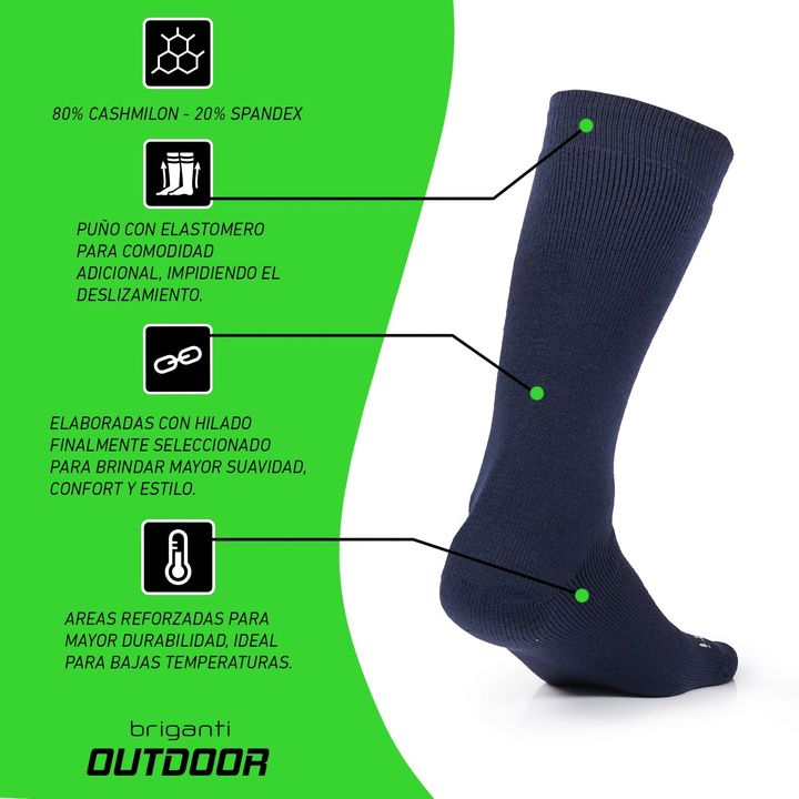Medias de hombre fabricadas con cashmilon de primera calidad. Puño con elastómero para comodidad adicional, impidiendo el deslizamiento. Elaboradas con hilado finamente seleccionado para brindar mayor suavidad, confort y estilo. Areas reforzadas para mayor durabilidad. Ideal para bajas temperaturas...