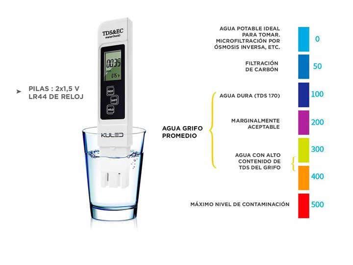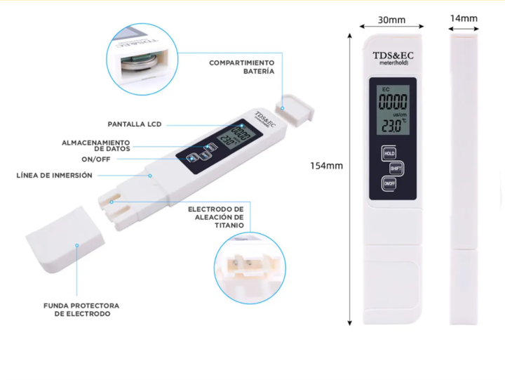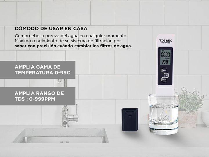 Se utiliza para probar la calidad del agua y monitoreo de la calidad de bebidas, piscinas y spas, acuarios, hidroponía, etc y de esta manera obtener el máximo rendimiento de su sistema de filtración por saber con precisión cuándo cambiar los filtros de agua. Especificaciones Compruebe la pureza del ...