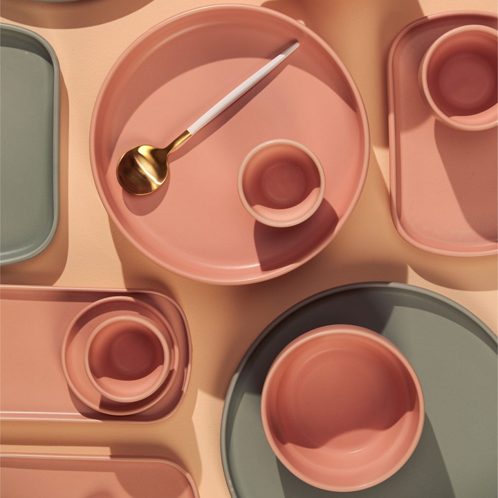 <p><em>- Apto para Lavavajillas y Microondas </em><br /><em>- Medidas Platos: 26 cm / 22 cm / 20.3 x 13 cm {Bandeja}</em><br /><em>- Material: Porcelana <br />- Modelo: Menta</em><br /><em>- Marca: Oxford </em><br /><em>- Origen: Brasil</em><br /><br /><em>Este set esta compuesto por:...