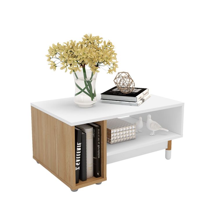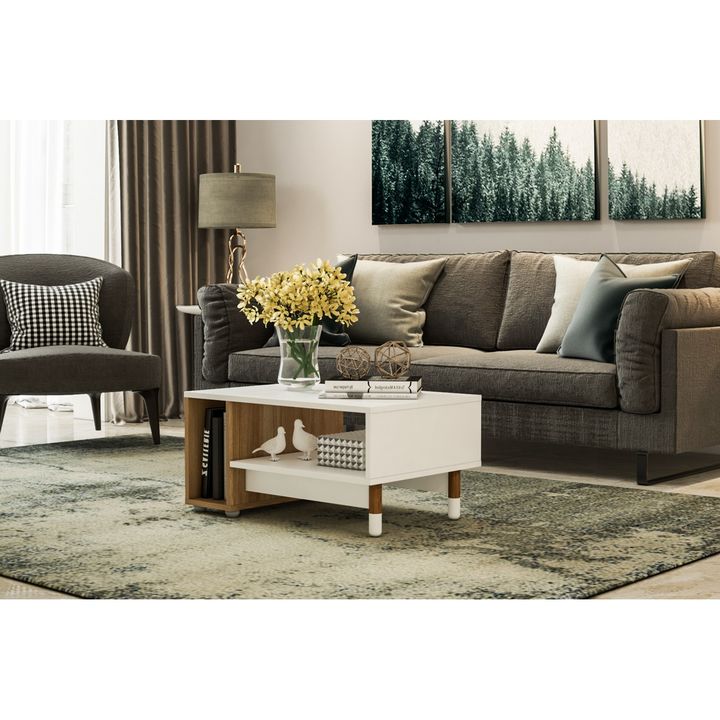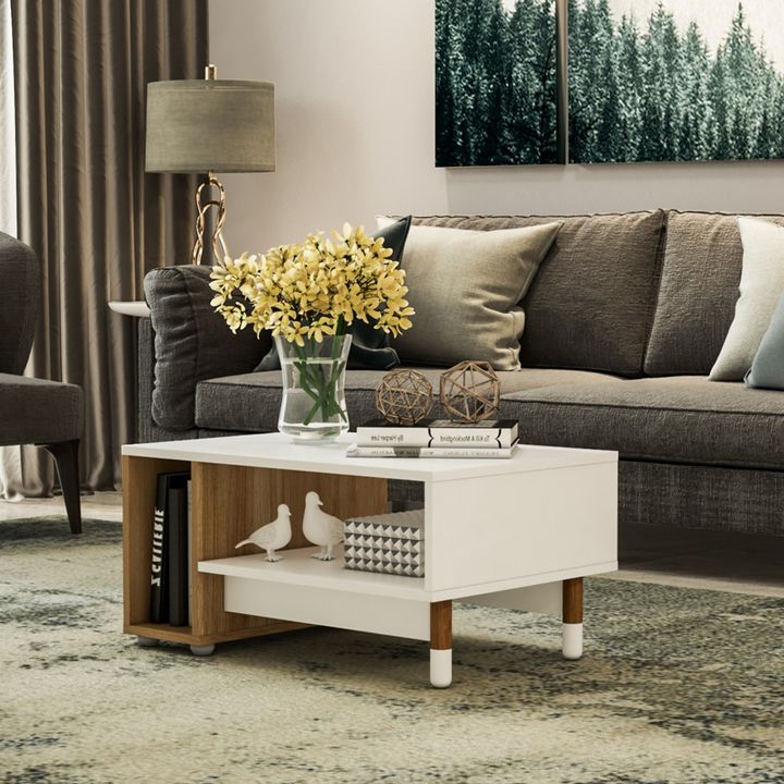 Mesa de Centro Mix & Match - Blanco / Aveiro - Estilo Alliance Especificaciones técnicas: -Marca: Mix & Match -Código: 902184 -Color: Blanco / Aveiro -Material de la estructura: MDP / MDF 15mm -Acabado: BP (Melamina) / FF (Finish Foiled) -Repisas: 2 -Soporte de peso: 20 kg -Patas: 2 de madera y 4 za...