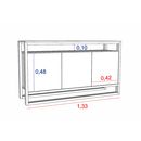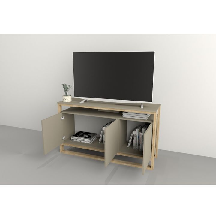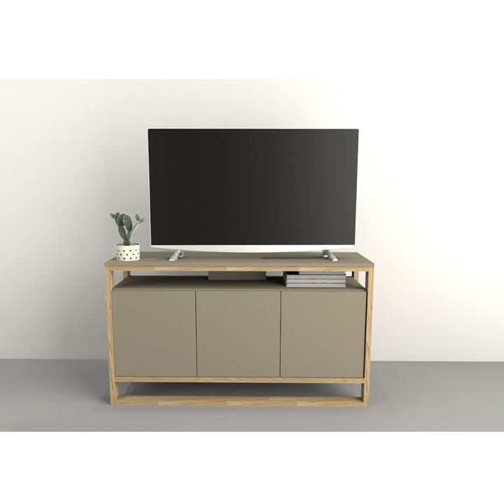 Estructura MDP 25mm. Bisagras metálicas. Melamina de Alta Resistencia. Cantidad de puertas: 3 Cantidad de estantes:1 Sistema push en puertas Peso: 38 Kg. Sistema Minifix Medidas: Ancho: 1.33 mts. Alto: 0.75 mts. Profundidad: 0.40 mts. Producto seleccionado para venta y entrega “EN CAJA”.
