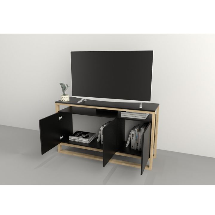 Estructura MDP 25mm. Bisagras metálicas. Melamina de Alta Resistencia. Cantidad de puertas: 3 Cantidad de estantes:1 Sistema push en puertas Peso: 38 Kg. Sistema Minifix Medidas: Ancho: 1.33 mts. Alto: 0.75 mts. Profundidad: 0.40 mts. Producto seleccionado para venta y entrega “EN CAJA”.