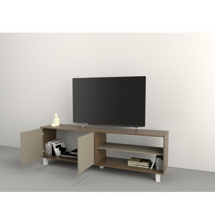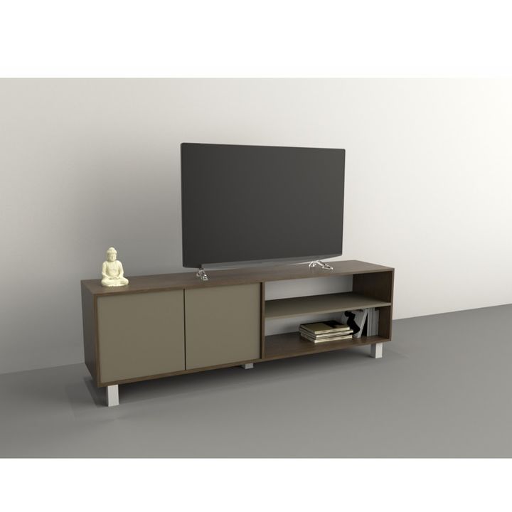 Cantidad de puertas: 2 Cantidad de estantes: 1 Sistema push en puertas. Peso: 35 Kg. Sistema Minifix. Bisagras metálicas. Patas plásticas con Laca UV. Melamina de Alta Resistencia. Se entrega en caja para armar. Medidas: Ancho: 1.80 mts. Alto: 0.52 mts. Profundidad: 0.36 mts.