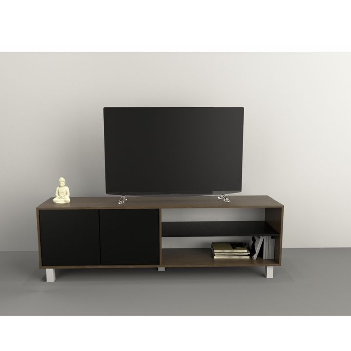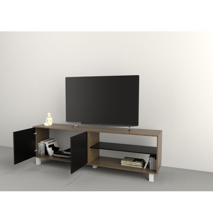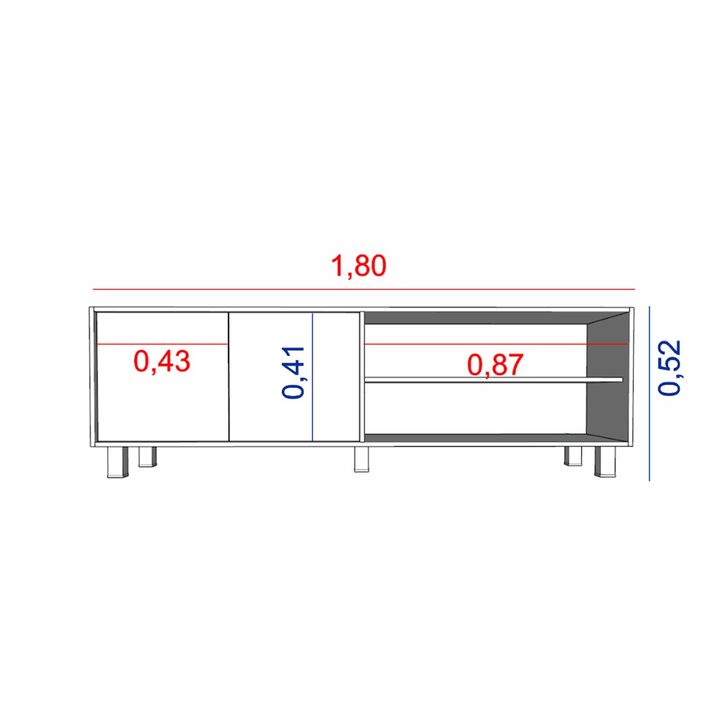 Cantidad de puertas: 2 Cantidad de estantes: 1 Sistema push en puertas. Peso: 35 Kg. Sistema Minifix. Bisagras metálicas. Patas plásticas con Laca UV. Melamina de Alta Resistencia. Se entrega en caja para armar. Medidas: Ancho: 1.80 mts. Alto: 0.52 mts. Profundidad: 0.36 mts.