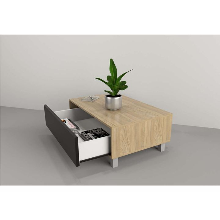 Mesa Ratona de melamina de alta resistencia. Diseño novedoso y exclusivo. Un cajón con sistema de apertura push. Sistema Minifix. Color Olmo Finlandes y Negro. Medidas: Ancho: 0.91 mts. Alto: 0.36 mts. Profundidad: 0.60 mts. Producto seleccionado para venta y entrega “EN CAJA”.