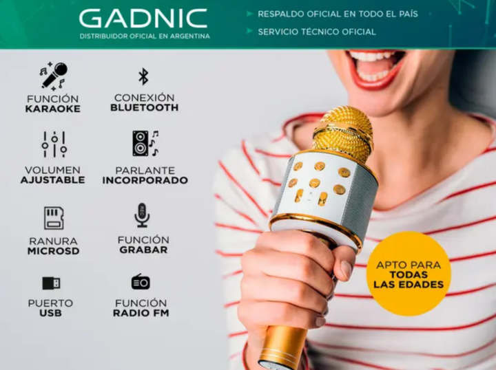 El Micrófono Gadnic KM-01 Karaoke Inalámbrico Bluetooth es la opción perfecta para disfrutar de sesiones de karaoke en casa o en cualquier lugar. Su diseño 100% inalámbrico lo hace práctico y versátil, permitiéndote llevarlo a reuniones con amigos y familiares sin necesidad de conexiones adicionales...
