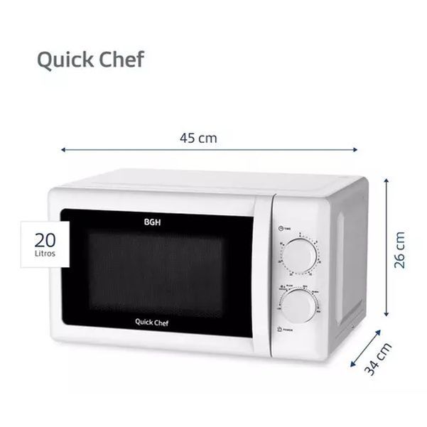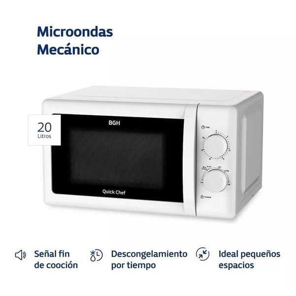 EN RADIO SAPIENZA PODES ENCONTRAR… MICROONDAS BGH B120M20 20LT MECANICO BLANCO Características generales · Marca: BGH · Línea: Quick Chef · Modelo: B120M20 · Color: Blanco · Voltaje: 220V Tecnología · Con grill: No · Con tecnología inverter: No...