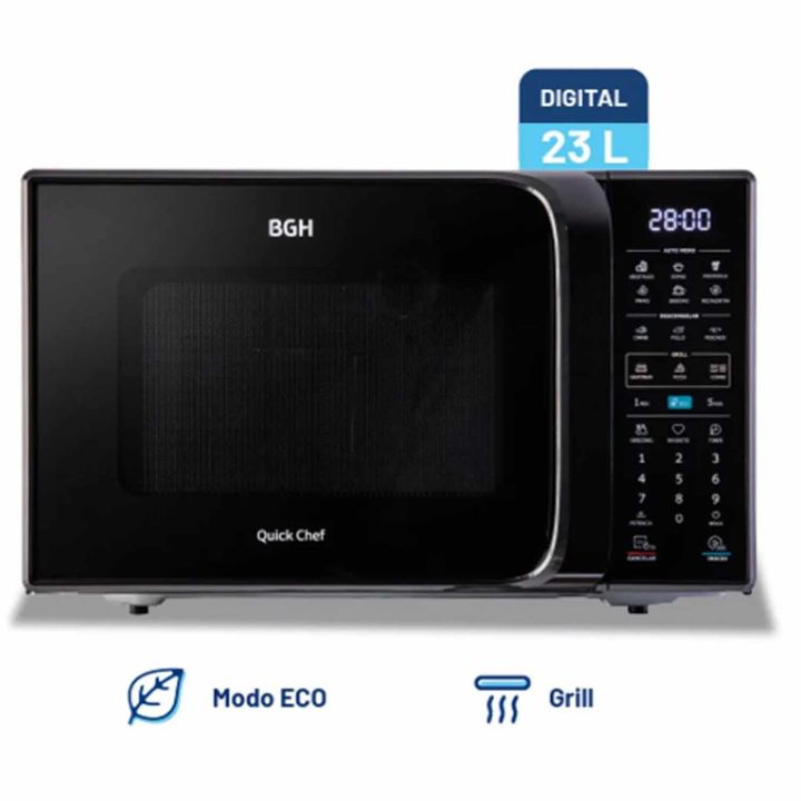 Más capacidad y doble función para tu cocina Con una capacidad total de 23 litros y tecnología bifunción, este microondas digital no solo calienta, sino que también gratina con grill para lograr resultados más sabrosos y versátiles. Su control por membrana y display LED blanco permiten una experienc...
