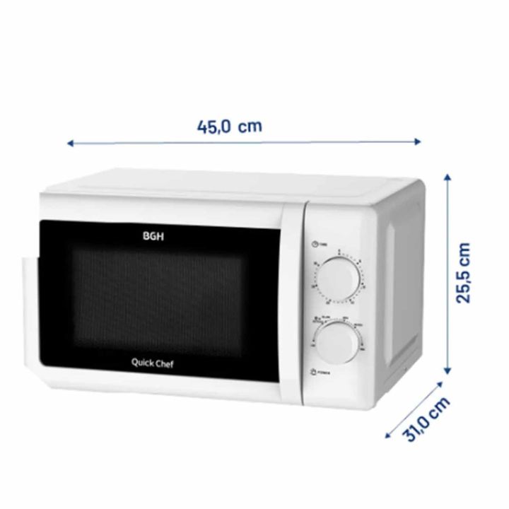 Potencia y practicidad en tu cocina Con 20 litros de capacidad, este microondas monofunción es ideal para calentar y cocinar de manera rápida y eficiente. Su control mecánico por perillas permite un uso simple e intuitivo para toda la familia. Calentamiento uniforme y seguro Gracias a su potencia de...