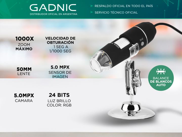 El Microscopio Digital U1000X es una herramienta versátil que combina la potencia de un aumento de hasta 1000X con una cámara de 5 megapíxeles, brindando imágenes nítidas y detalladas para una variedad de aplicaciones. Ideal para la educación, la investigación y la inspección, este microscopio permi...