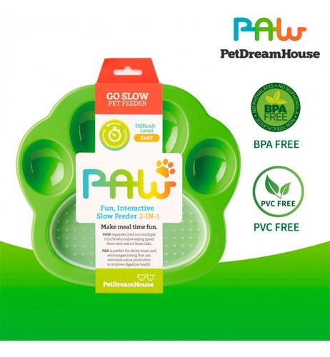 PetDreamHouse PAW 2-EN-1 Mini alimentador lento y almohadilla para lamer Verde Easy - PDHF012 ¡Pensá más allá de los tazones! El PAW Slow Feeder es un plato de alimentación divertido y único, perfecto para que los dueños de mascotas preparen un plato de comida con cualquier tipo de comida y golosina...
