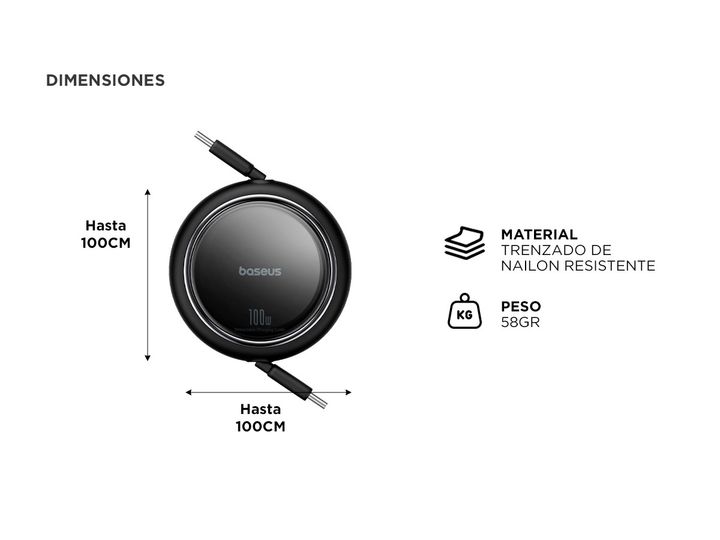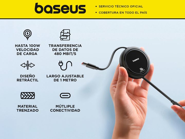 Baseus presenta el nuevo Mini Cable Retráctil USB-C: Capacidad de Carga de 100W: A diferencia de muchos cables retráctiles que solo alcanzan los 20W, este modelo permite cargar dispositivos de mayor capacidad como laptops. Diseño Compacto Retráctil: Permite reducir el enredo y facilita su almacenami...