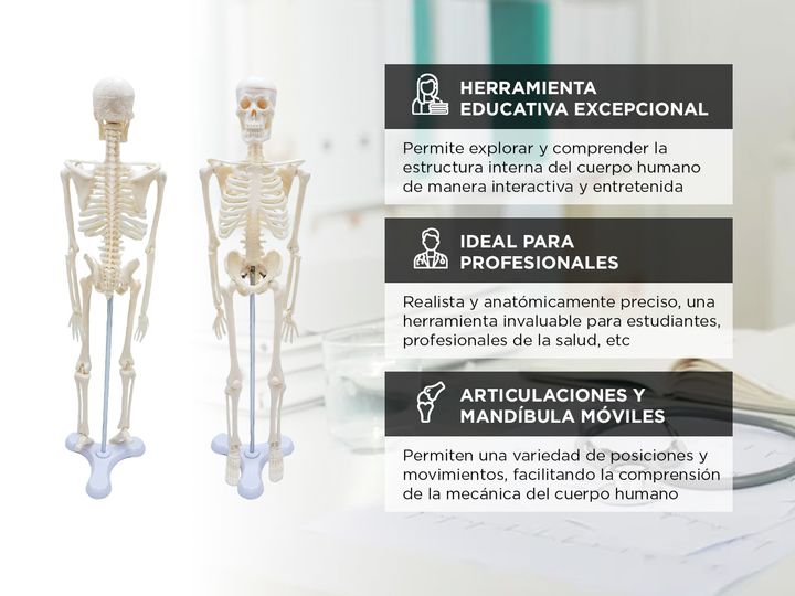 ¡Presentamos una fascinante ventana al mundo de la anatomía! El Mini Esqueleto Articulado es mucho más que un simple objeto de decoración; es una herramienta educativa excepcional que te permite explorar y comprender la estructura interna del cuerpo humano de manera interactiva y entretenida. Imagin...