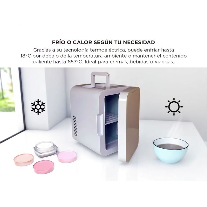 Estilo y funcionalidad en cualquier espacio Organizá tus cosméticos o snacks con esta mini heladera de diseño compacto y elegante en tono rosa. Ideal para uso diario en el hogar, oficina o viajes, ofrece practicidad sin sacrificar estética. Frío o calor según tu necesidad Gracias a su tecnología ter...