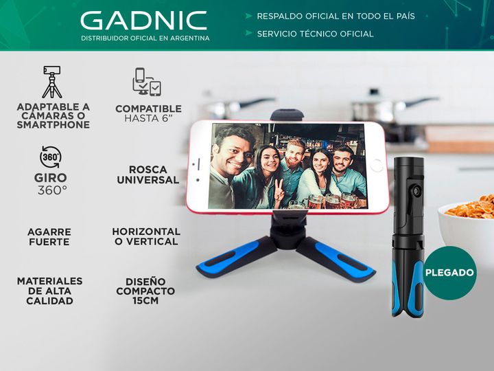 Presentamos el Mini Trípode Gadnic para Celular y Cámara, una herramienta versátil diseñada para facilitar tus tomas fotográficas y de video. Fabricado con materiales de alta calidad, este trípode ofrece una sensación de dureza y un agarre firme, asegurando la protección de tu equipo. Su recubrimien...