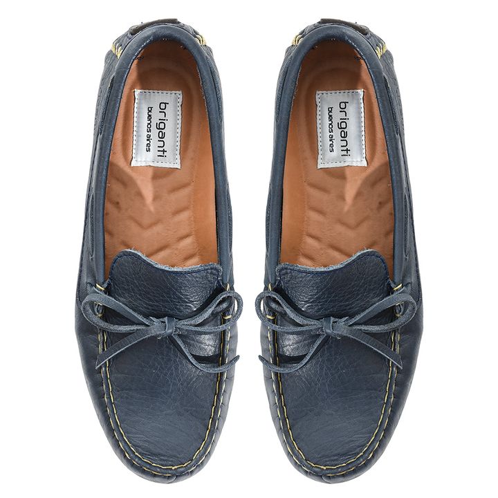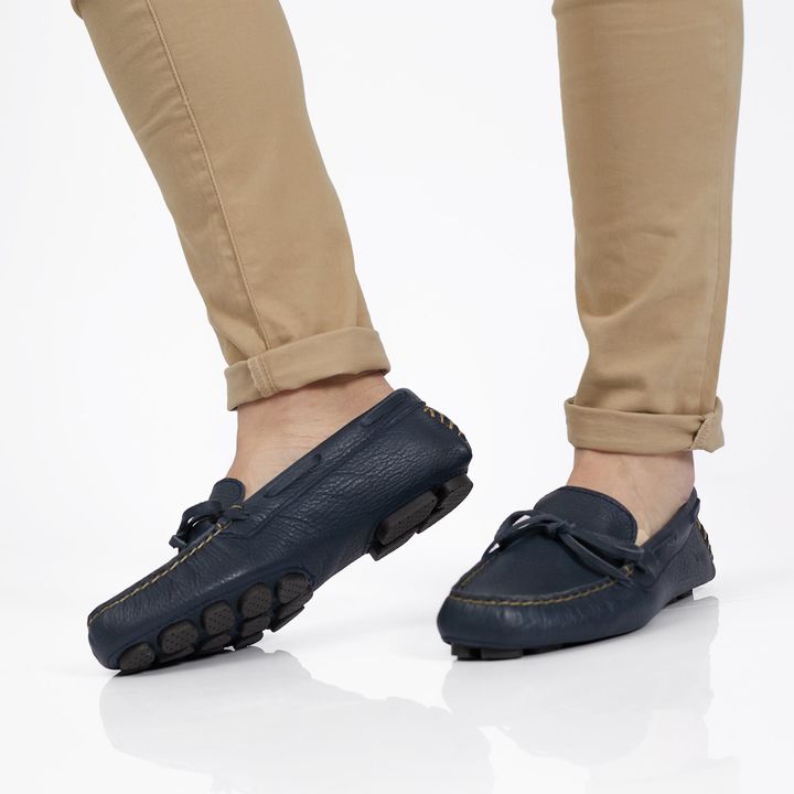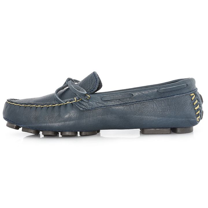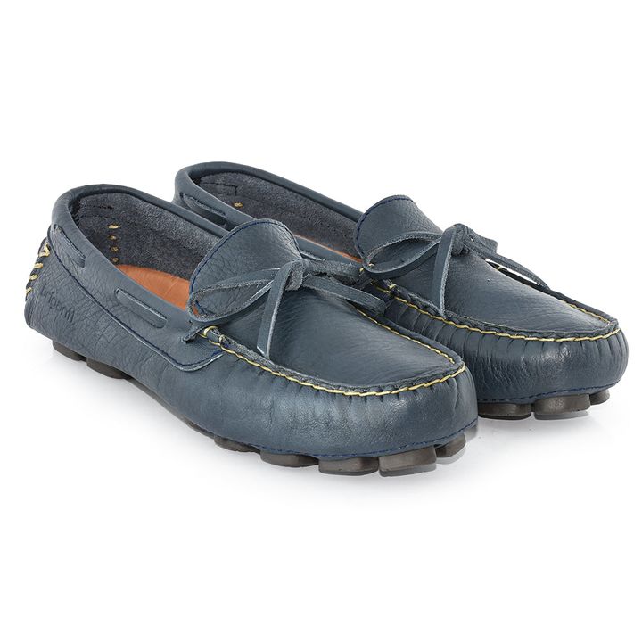 Mocasines para hombre fabricados en cuero premium azul. Un modelo sugerente con moño sobre el empeine y detalles laterales. Incluye costura artesanal y detalles decorativos. Su extraordinaria flexibilidad y forma ergonómica garantizan libertad absoluta de movimiento y niveles de comodidad propios de...