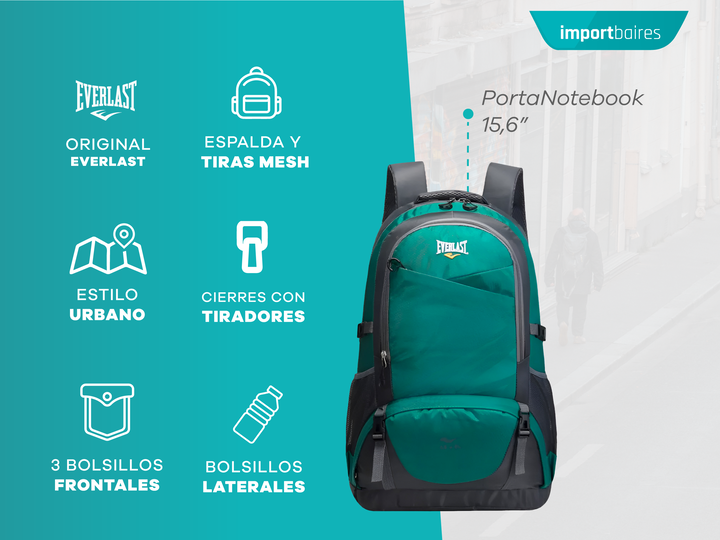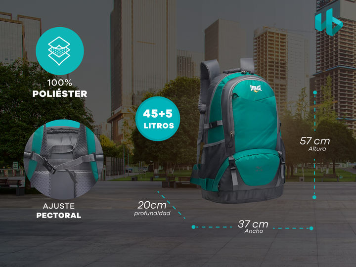 Mochila De Viaje Camping 45 + 5 Litros Everlast Con Ajuste Pectoral 13797 Aqua Turquesa